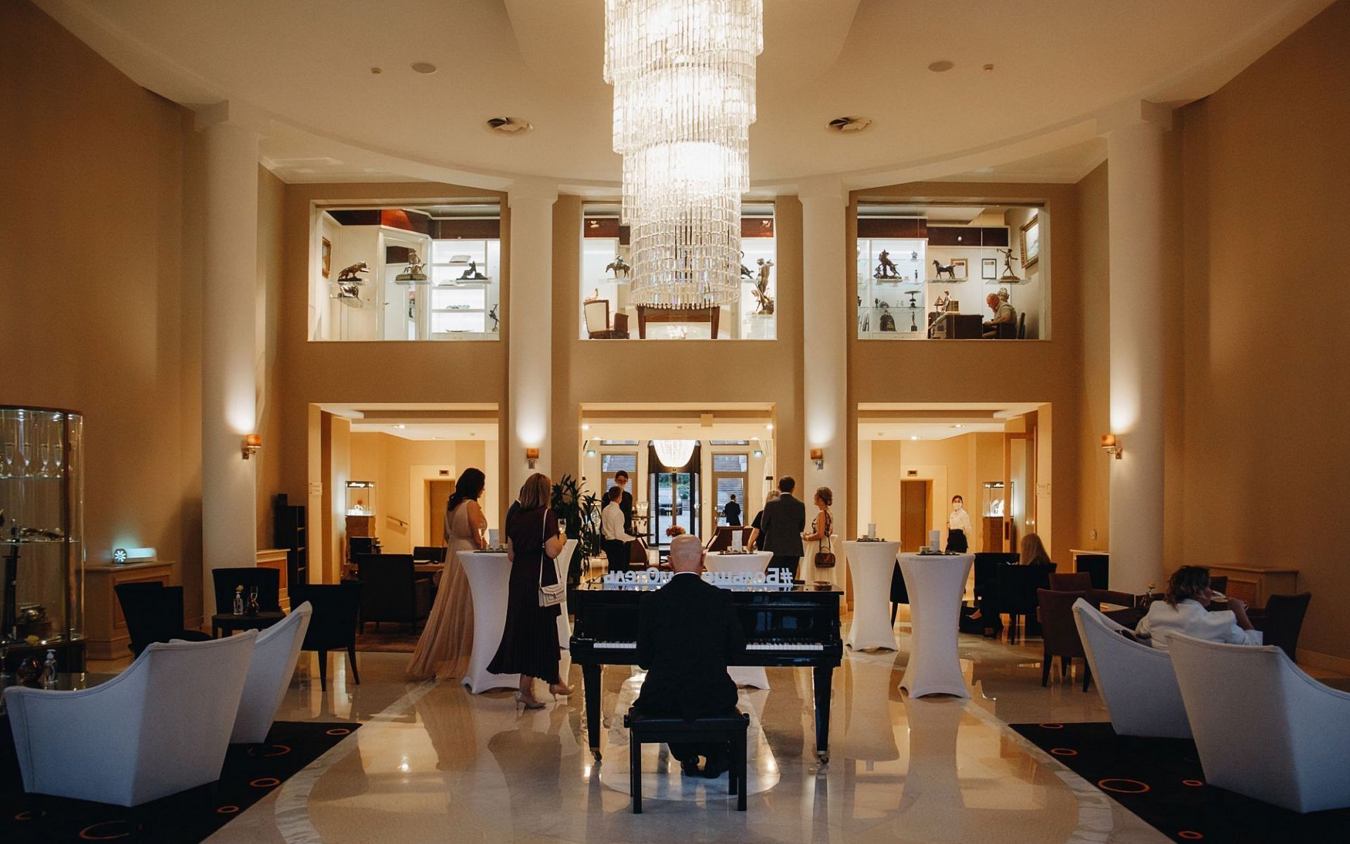 В программе вечера была живая классическая музыка в исполнении музыканта на рояле, танцы-Полонез, Мазурка, Вальс, а также интерактивная программа с конкурсами и подарками.