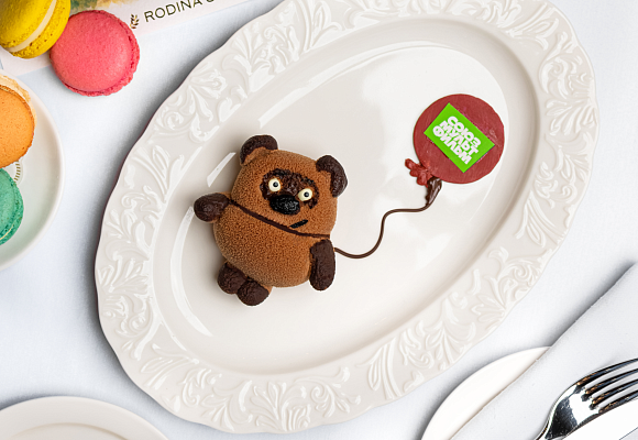 В легендарном отеле RODINA Grand Hotel & SPA Sochi 5* появилась особенная премьера — десерт, созданный в кондитерской мастерской RODINA Sochi в сотрудничестве с киностудией «СОЮЗМУЛЬТФИЛЬМ». Это трогательная, аккуратная интерпретация Винни-Пуха, выполненная с той внимательностью к деталям, которая так характерна для отеля RODINA Sochi.